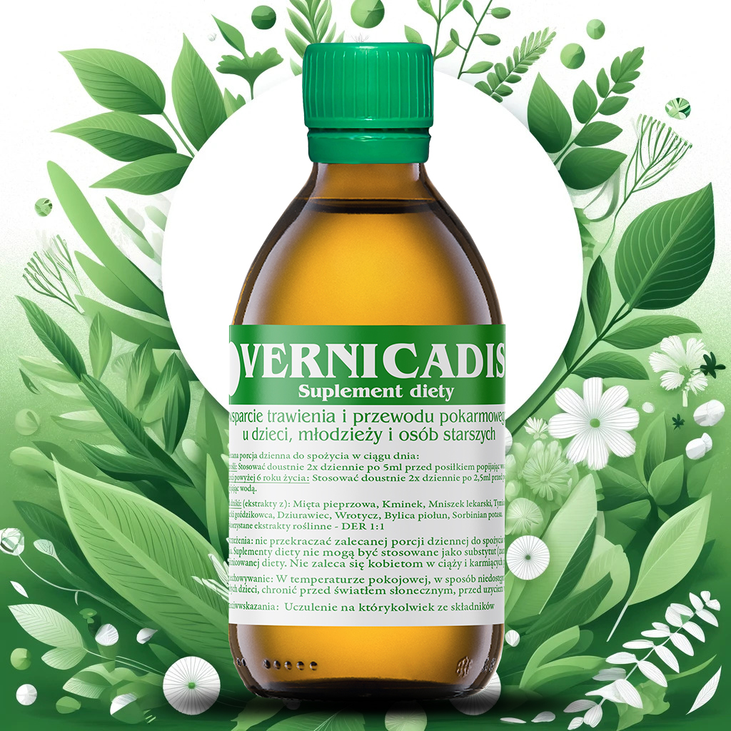 VERNICADIS to suplement diety opracowany z myślą o osobach dorosłych, które chcą wspomóc naturalne procesy trawienne oraz prawidłowe funkcjonowanie układu pokarmowego.